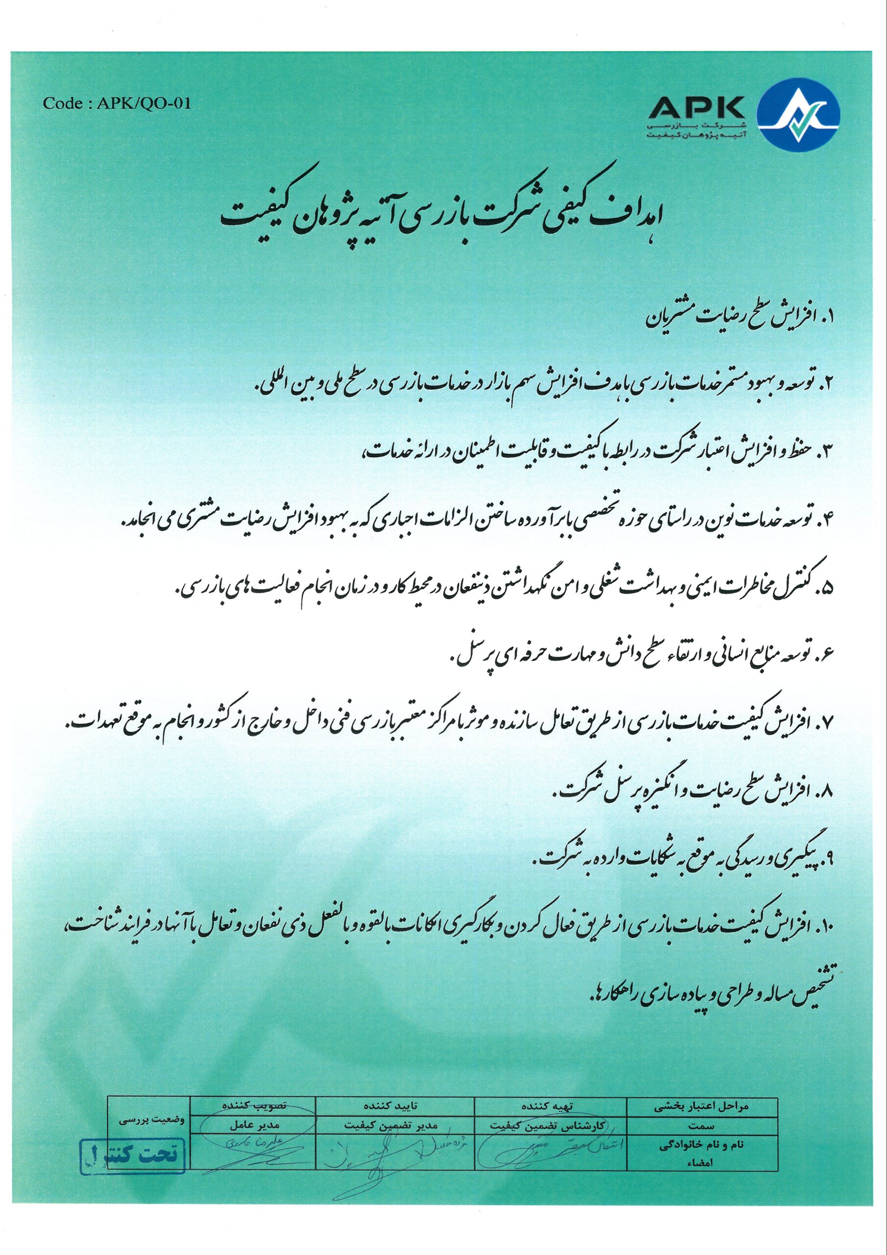 شرکت عامل تطبیق آتیه پژوهان کیفیت با هدف ارتقای کیفیت خدمات تاسیسات گردشگری ، به عنوان یکی از بازوهای سیستم نظارت وزارت میراث فرهنگی، گردشگری و صنایع دستی ، بخشی از فعالیت های خود را بر اجرای طرح تطبیق استاندارد های کیفیت خدمات گردشگری متمرکز کرده است . در این خصوص اجرای طرح درجه بندی کیفی تاسیسات گردشگری (هتل ها، هتل آپارتمان ها، واحد های پذیرایی بین راهی، سفره خانه های سنتی، اقامتگاه های بومگردی و …)